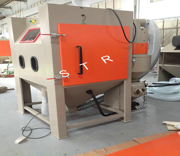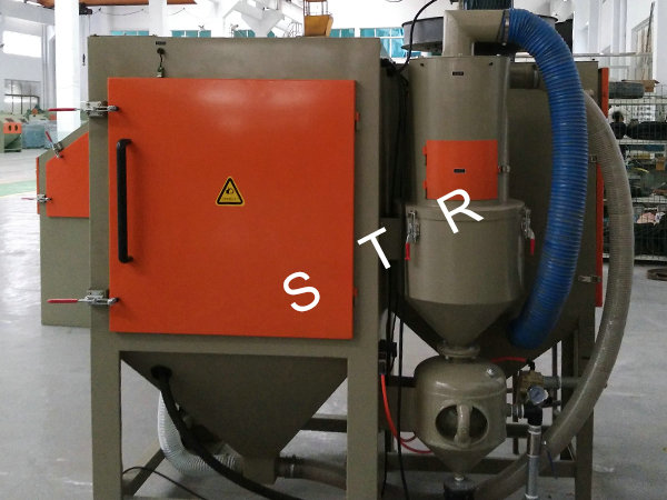 Features: Sandblasting machine is mainly used in electroplating, paint, coating area to-be-covered before piating; Old way of refurbished cleaning; Metal products and plastic, crystal, glass surface trace eliminate scattered, dumb, surface process to enhance the grade of the product's surface; Machining parts tiny burrs purify; Increase the metal surface hardness, eliminate stress such as spring, mechanical cutters, etc.; Metal and non-metai products surface etching pattern, writing and prevent slippery processing, such as marble, seals, and handle prevent slippery, etc. The machine is applied the range: applicable to small and medium-sized general of workpiece and high hardness workpieces quickly sandblasting. Such as engine fittings, valves, heat treatment workpiece, etc. This machine has novel, scientific design and reasonable structure, convenient operation, processing superior performance; Gush arenaceous speed, the impact point at deep.