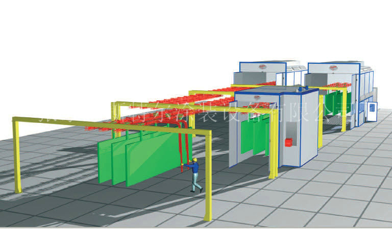 傳輸機依照加工制作工藝 流程步驟采取適當的布置開發,整合各種植加工道工序(前處置、噴粉室、涂漆室、固定烘道等),提高活動相關人員,改變種植加工頻次,提種植加工有效率。